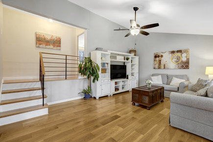 Welcome home to this beautifully updated 3-bedroom, 2-bath rambler in the highly sought-after Kings Park West community! This light-filled home features an open-concept design with soaring cathedral ceilings, a newly renovated kitchen, and gleaming hardwood floors throughout.